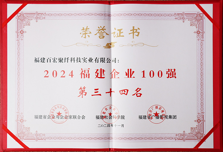 百宏聚纖公司榮登 “福建首屆品牌價值百強”榜單